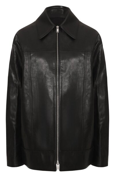 Прямую куртку с вискозной подкладкой выполнили из телячьей наппы с легким блеском. Сама модель с двумя боковыми карманами застегивается встречной молнией, а манжеты — крючками.