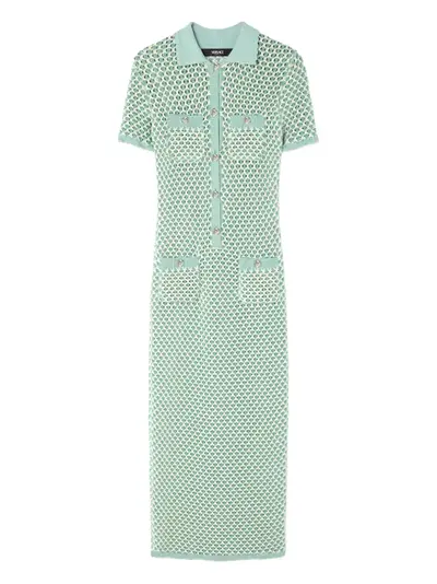 sea green short front button fastening four front patch pockets signature Medusa Head buttons scallop hem rear slit polo collar