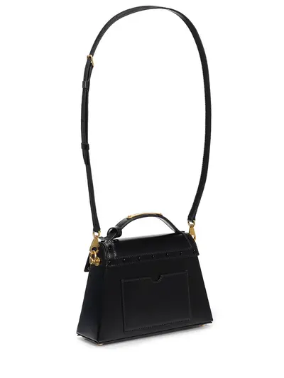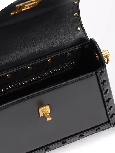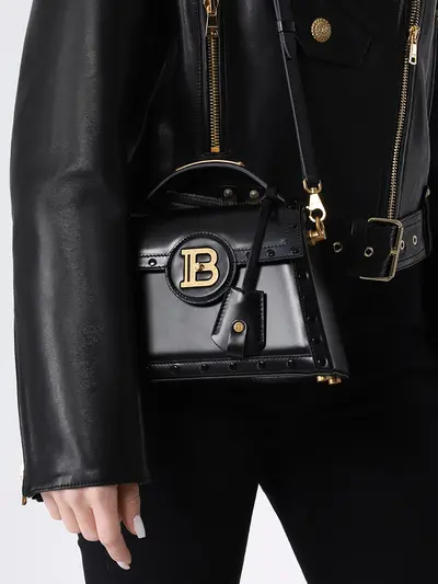 -Модель с короткой ручкой для носки с табличкой с гравировкой бренда, узким съемным ремнем на плечо с возможностью регулировки длины, внутренним карманом на молнии и плоским карманом сзади, крупной пряжкой с литерой В на лицевой панели, застежкой-клапаном.
