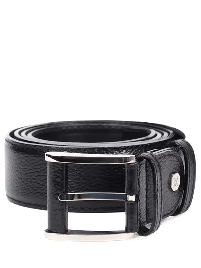 -Черный ремень из натуральной зернистой кожи от ARTIOLI. -Модель с квадратной пряжкой и двумя кожаными шлевками дополнит деловые и повседневные образы.