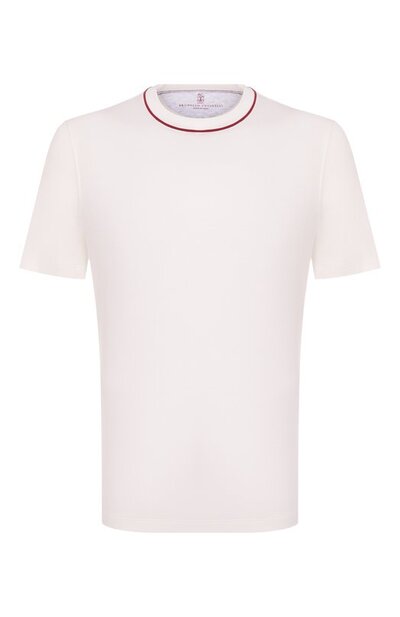 Круглую горловину футболки кроя Regular fit подчеркнули узким контрастным кантом. Для пошива модели с миниатюрными боковыми разрезами использовали джерси из чистого хлопка.