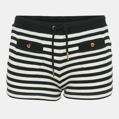 Minimalist and chic, these black rib knit shorts from Celine bring nautical inspired charm with a modern twist. Designed for comfort and style, they work effortlessly from city strolls to casual brunches. Pair with a striped top and sandals for a fresh, French girl look.