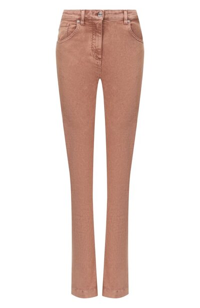 Зауженные джинсы со средней посадкой сшиты из эластичного хлопкового денима с потертостями. Два из пяти карманов укреплены заклепками-цветами, а пояс украшен брендированным патчем.