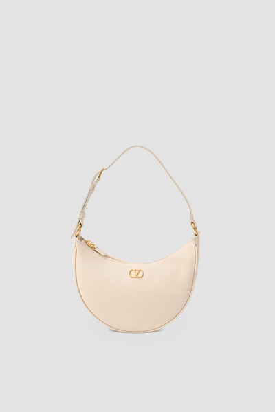 Компактная сумка VLogo закруглённой формы от бренда VALENTINO. Для производства кремового аксессуара выбрана матовая телячья кожа с зернистой текстурой. Атрибутами Дома выступают одноимённая золотистая эмблема, размещённая спереди, и тиснёные надписи и логотип во внутренней части. Модель с регулируемой округлой ручкой для переноски застёгивается золотистой молнией.
