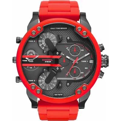 Мужские часы. Коллекция Mr. Daddy 2.0. Часы-хронограф с секундомером на основном циферблате. Круглый стальной корпус. 12-ти и 24-х часовой формат времени. Счетчики на 60 секунд и 30 минут. Окошко даты. Четыре часовых пояса. Четыре механизма, на двух из которых указатели часов и минут в виде вращающихся дисков, на третьем - указатель секунд. Завинчивающаяся задняя крышка. Браслет с раскладывающейся застежкой. Тип механизма: кварцевый. Корпус: сталь с PVD покрытием и силиконовыми вставками. Циферблат: серый. Браслет: стальной с PVD покрытием, силиконовый. Водозащита: 30WR. Стекло: минеральное. Календарь: число. Габаритные размеры: 57х66мм, толщина 14мм, ширина браслета 27мм, длина браслета 205мм.