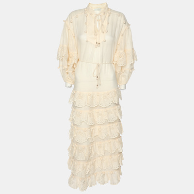Zimmermann Cream Ramie Lyre Trim Midi Dress XS 1146446 (lpn29840247)