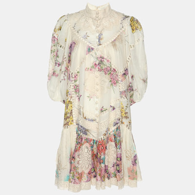 Zimmermann Zimmerman Multicolor Printed Ramie Jude Spliced Trim Mini Dress S 1146456 (lpn29840250)