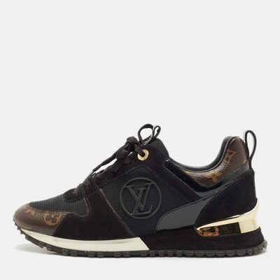 Louis Vuitton Black Mesh, Suede and Monogram Canvas Run Away Sneakers Size 38 1148946 (чёрный, lpn29840772)