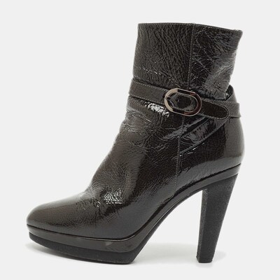 Sergio Rossi Grey Patent Leather Ankle Boots Size 36.5 1148872 (lpn29849450)