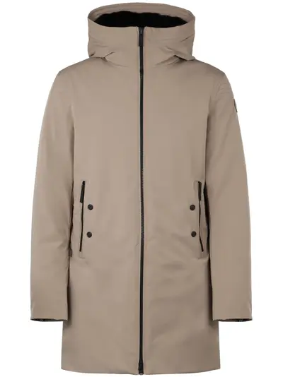 beige down-feather filling front zip fastening two side zip-fastening pockets cuff zips