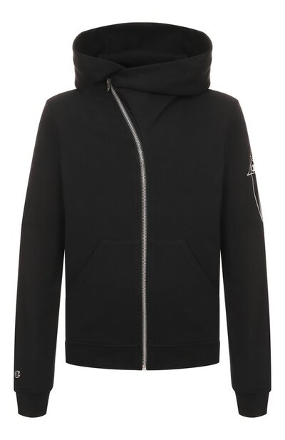 В коллекцию, созданную с командой Champion, вошла толстовка с капюшоном, накладными карманами по бокам и асимметричной молнией. Рукава модели из плотного органического хлопка украсили контрастной вышивкой с символикой обоих брендов.