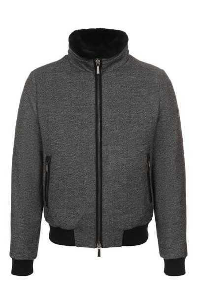 Для пошива бомбера Bellati-LP с трикотажными манжетами и поясом в рубчик использовали плотную ткань из шерсти первого пострига. Модель на гусином пуху дополнили боковыми и парой внутренних карманов с молниями. На воротнике – съемная отделка из стриженой овчины.