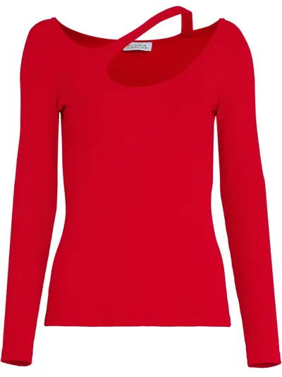red asymmetric design straight hem