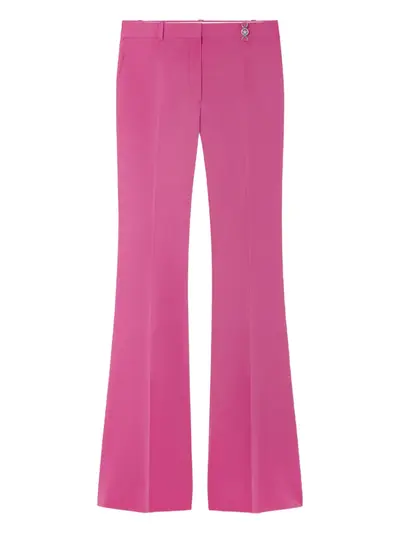 fuchsia pink concealed front button, hook and zip fastening belt loops two side inset pockets two rear button-fastening pockets