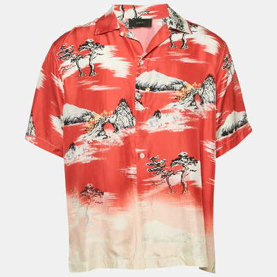 Amiri Red Silk Faded Aloha Short Sleeve Shirt XL 1149667 (розовый, lpn29886196)