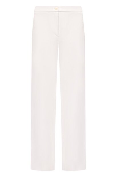 Брюки палаццо с высокой посадкой и прорезными карманами по бокам вошли в капсульную коллекцию Icon. Модель из пике на основе вискозы органично впишется в базовый гардероб.