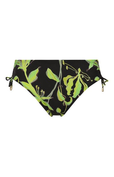 Плавки-бикини выполнили из микрофибры с принтом Fleurs de Nuit. В кулиски по бокам модели продели шнурки с брендированными эглетами.