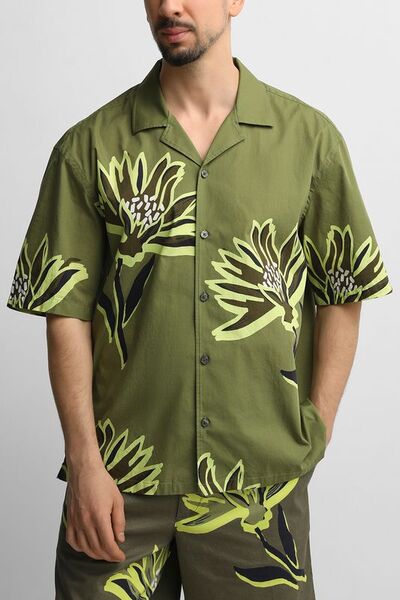 Рубашка хлопковая с коротким рукавом с принтом Boss by Hugo Boss 7612900 (зелёный, lpn29888777)