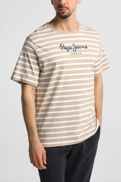 Футболка хлопковая в полоску с логотипом Pepe Jeans 7702204 (lpn29893343)