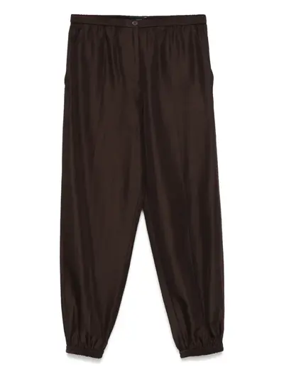 chocolate brown front button fastening two side slit pockets elasticated ankles