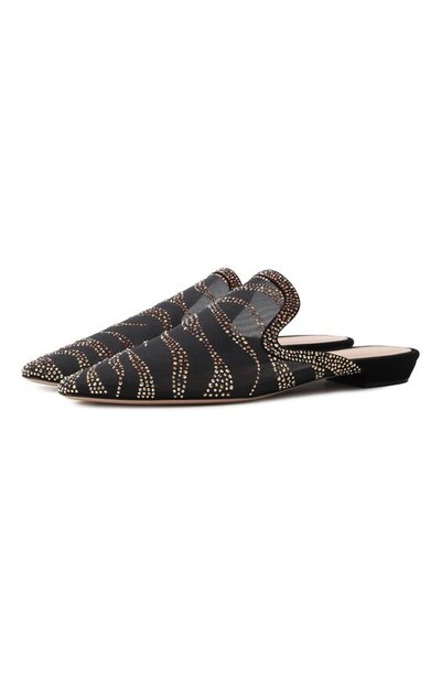 Сабо Raja Crystal с тигровой полоской из кристаллов поможет создать акцент в вечернем образе. Союзку пары выполнили из сетки, укрепив края замшей в тон. Модель с брендированной стелькой поставили на небольшой устойчивый каблук.