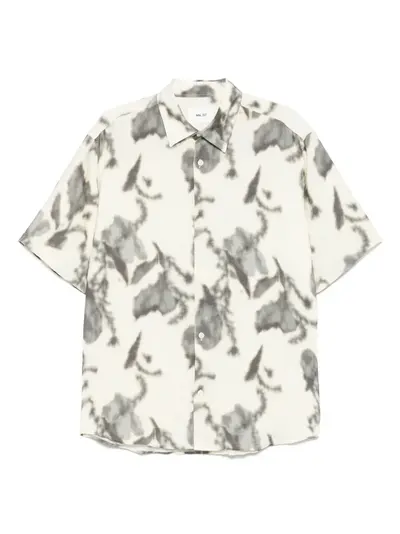 ecru front button fastening short sleeves classic collar tie-dye print