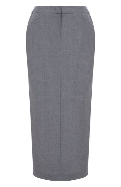 Миди-юбку Vulera прямого кроя выполнили из меланжевой шерсти первого пострига. Модель с длинным разрезом сзади и потайной застежкой дополнили боковыми карманами.