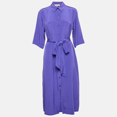 Diane Von Furstenberg Purple Button Front Belted Midi Shirt Dress S 1155123 (фиолетовый, lpn29922683)