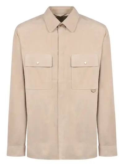 beige concealed front button fastening chest flap pockets long sleeves buttoned cuffs