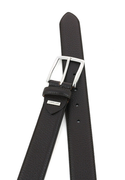 Ремень Corneliani выполнен из первоклассной зернистой кожи насыщенного чёрного цвета, который излучает таинственную элегантность и неподвластный времени стиль. Эта цветовая гамма подчеркивает строгость и роскошь, создавая идеальный акцент для любого современного мужского гардероба. Внутренняя часть выполнена из мягкой кожи светло-бежевого оттенка, обеспечивающей комфорт при носке. Полированная серебристая пряжка добавляет изысканный блеск и завершает образ с утонченным штрихом. Каждая деталь, от изящной строчки до аккуратно вставленной эмблемы, демонстрирует приверженность Corneliani к высокому качеству. Этот ремень — не просто функциональный аксессуар, а символ статуса и утонченного стиля, который соответствует высоким стандартам, ожидаемым от Corneliani. Купить его можно с удобной доставкой по всей России.