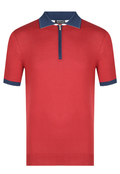 Ярко-красное поло Bertolo создано для тех, кто не боится выразить свой стиль. Выполненное из 100% премиального хлопка, оно сочетает комфорт и высокое качество, характерные для изделий класса люкс. Контрастные синие вставки на отложном воротнике и манжетах. Насыщенный красный оттенок делает поло идеальным для повседневных образов с ноткой смелости и уверенности.