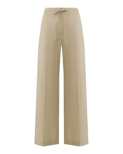 Эти брюки от P.A.R.O.S.H. излучают утончённую элегантность и изысканный комфорт, станут основой для создания стильной капсульной коллекции. Выполненные в благородном бежевом оттенке, они предлагают универсальность и лёгкость сочетания с другими элементами гардероба. Высокая посадка акцентирует линию талии, визуально удлиняя силуэт и придавая образу элегантность. Широкие брючины обеспечивают свободное движение, добавляя ощущение лёгкости и воздушности. Эластичный пояс со шнурком добавляет практичности и комфорта, позволяя регулировать посадку. Этот элемент не только функционален, но и придаёт образу лёгкий налёт непринуждённости. Не забыв о деталях, свободный крой подчёркивает внимание к комфорту и современной эстетике, обеспечивая стильный и расслабленный вид, который уместен в любой обстановке — от прогулки по городу до неформальных встреч. Идеально сочетаясь как с классическими рубашками, так и с простыми топами, эти брюки станут базовой основой в вашем гардеробе для создания разнообразных и стильных образов.