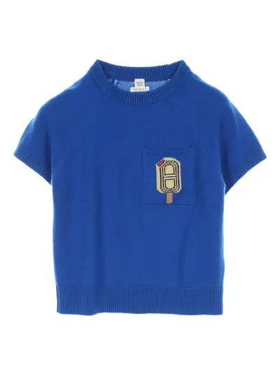 circa 2010s royal blue cashmere crew neck chest patch pocket short sleeves straight hem Condition: EXCELLENT. This previously owned item is in near-perfect condition with no signs of damage or use.