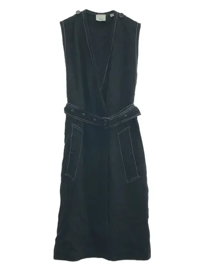 circa 2000s black V-neck sleeveless detachable and adjustable waist belt slip pockets to the sides contrasting border Condition: GOOD. This previously owned and used item is in good condition with minimal signs of use. This may include fading of material or plating and scratches.