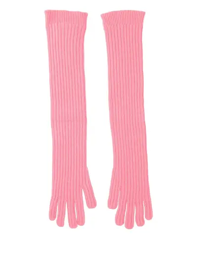 bubblegum pink cashmere ribbed knit full-finger design elbow length Condition: GOOD. This previously owned and used item is in good condition with minimal signs of use. This may include fading of material or plating and scratches.
