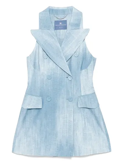 indigo blue double-breasted button fastening sleeveless two side flap pockets