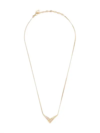 circa 1980-1990s gold-tone gold plated rhinestone embellishment polished finish spring-ring fastening adjustable-length chain logo charm Condition: GOOD. This previously owned and used item is in good condition with minimal signs of use. This may include fading of material or plating and scratches.
