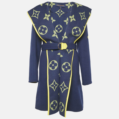 Louis Vuitton Navy Blue Monogram Collar Wool Felt Belted Coat L 1162457 (lpn29975010)