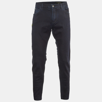 These slim fit jeans from Dolce and Gabbana put a fresh spin on classic denim with red floral detailing. Finished in a dark blue wash, they bring a subtle point of interest to a tailored silhouette.
