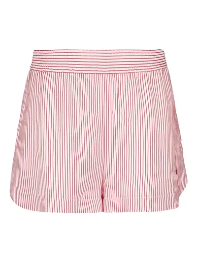 red/white elasticated waistband side slit pockets stripe detail embroidered-logo to the side
