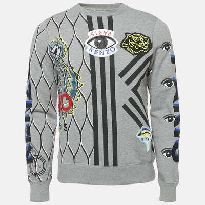 Kenzo’s grey sweatshirt balances comfort with creativity, showcasing embroidered appliqué detailing for a tactile finish. Crafted in soft cotton, it’s a versatile staple with a distinct edge.
