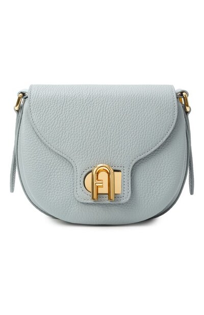 Сумку Lotus с текстильным брендированным ремнем выполнили из зернистой кожи. Модель с плоским карманом закрывается клапаном с поворотным замком Arch.