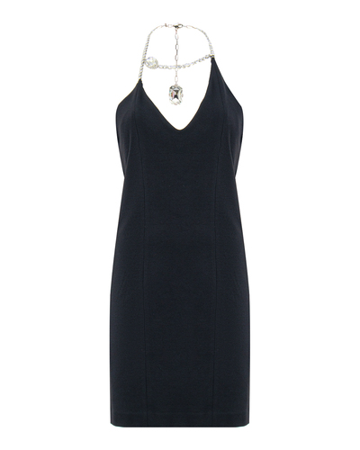 Коктейльное мини-платье из джерси — идеальный выбор для вечерних мероприятий и особых случаев. Изготовленное из мягкого и эластичного материала, оно обеспечивает комфортную посадку и легкость в носке, подчеркивая ваши формы. Уникальным акцентом этого платья является регулируемое ожерелье-из цепи с драгоценными камнями, которое добавляет нотку роскоши и элегантности. Оно не только служит стильным украшением, но и позволяет вам настроить длину по своему усмотрению, создавая индивидуальный образ. Доступное в классическом черном цвете, это платье легко комбинируется с различными аксессуарами и обувью, позволяя вам создать как строгий, так и более игривый образ. Минимальная длина подчеркивает ноги и придает вашему стилю дерзости и уверенности. С этим коктейльным мини-платьем вы будете выглядеть безупречно на любом мероприятии — от вечеринки до романтического ужина. Добавьте его в свой гардероб и станьте центром внимания!