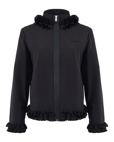 Полиэстеровая олимпийка в черном цвете — идеальный выбор для создания модного и уютного образа в прохладную погоду. Застежка на молнии спереди обеспечивает удобство и легкость в использовании, позволяя быстро надеть или снять ее. Капюшон с оборками добавляет игривости и оригинальности, защищая от ветра и дождя. Рукава с оборками на манжетах придают изделию романтичный вид, делая его более женственным и элегантным. Отделка оборками по низу создает завершенный образ и подчеркивает уникальный стиль данной модели. Изготовленная из высококачественного полиэстера, эта куртка не только выглядит стильно, но и обладает хорошими теплоизоляционными свойствами, что делает ее подходящей для различных погодных условий. Она легко комбинируется с джинсами, юбками или спортивными брюками, позволяя вам создавать разнообразные образы — от повседневного до более нарядного. С этой олимпийкой вы будете чувствовать себя комфортно и уверенно в любой ситуации! Добавьте ее в свой гардероб и наслаждайтесь стильным сочетанием практичности и моды.