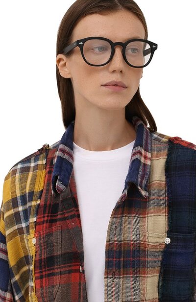 У черной знаковой для бренда оправы две особенности: силуэт с высоко расположенным мостом и алмазные заклепки. Для изготовления широкого аксессуара мастера марки использовали матовый ацетат, в равной мере легкий и прочный. Изделие выглядит достаточно нейтрально, чтобы подойти и мужчине, и женщине.