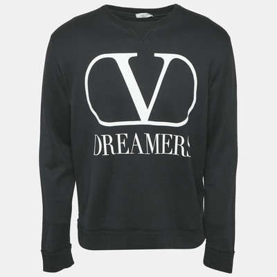 Valentino Black Logo Print Cotton Crew Neck Sweatshirt M 1163345 (чёрный, lpn30029667)