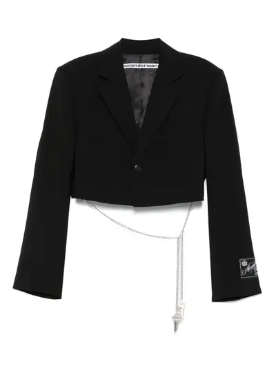 black front button fastening logo patch at the sleeve long sleeves cropped