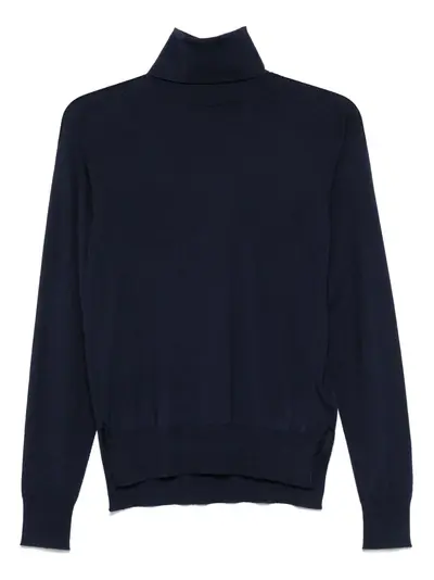 midnight blue turtleneck neckline long sleeves ribbed cuffs ribbed hem