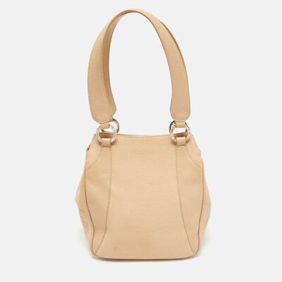 Indulge in the elegance of this Bvlgari tote, crafted from beige leather. Ideal for any occasion, the totes graceful design and neutral hue make it a versatile addition to your wardrobe.