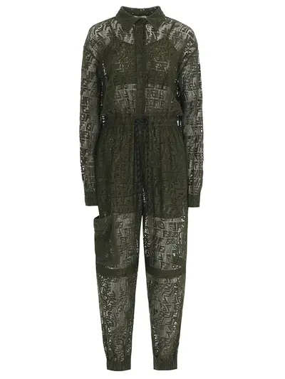 -Полупрозрачный зелёный комбинезон из смесового хлопка с паттерном логотипа Zucca от FENDI.